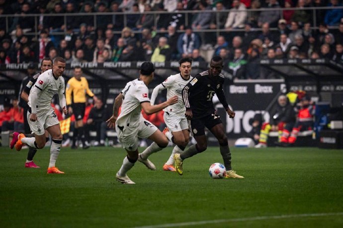 第42分钟,奥利塞快发定位球,迪亚斯立马横敲禁区,凯恩不停球直接扫射,尼古拉斯倒地将球扑出;第45分钟,比朔夫外围大力远射,尼古拉斯飞身奋力一扑再次化解险情;整个上半场门兴没有一次射门,拜仁8次射门并拥有80%的控球率,但比分依然是0:0。